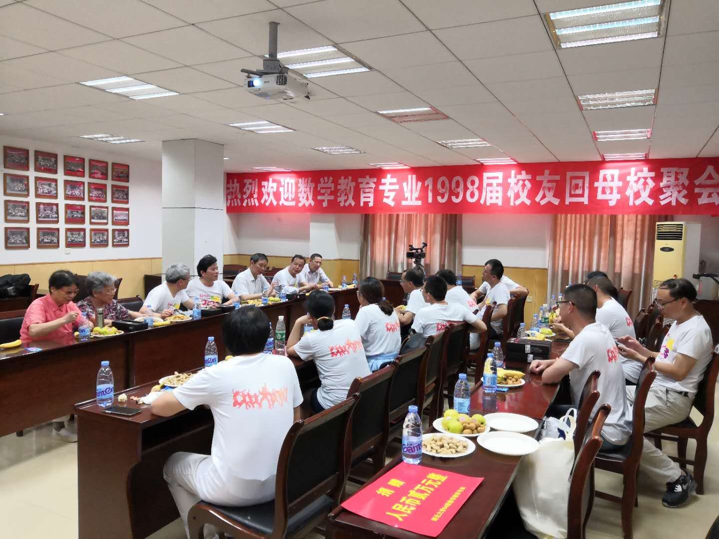 7月21日,爱游戏官方网站1994级数学教育专业员工返校团聚,纪念毕业20周年。公司党委书记游春林、副经理付应雄及部分任课教师代表参加了员工座谈会。